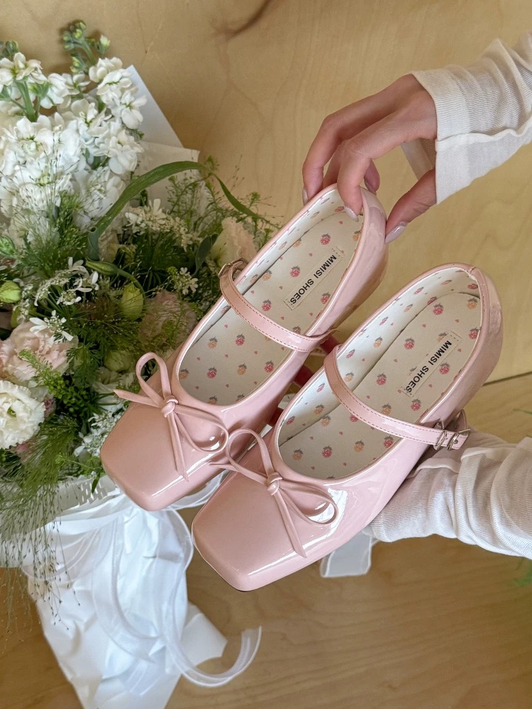 کفش لوفر زنانه پلتفرم ورنی با پاییون صورتی🎀
