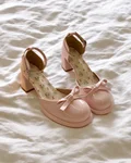 🔸 ویژگیها:پاشنهی کوتاه و پهن: مناسب برای استفاده روزمره یا مهمانیهای خودمونی / بند ضربدری روی مچ یا یک بند کلاسیک روی پا: برای فیت بهتر و زیبایی بیشترطراحی فانتزی اغلب همراه با تزئیناتی مثل پاپیون، قلب یا گلهای کوچک جلوی بسته (گرد یا بیضی): استایل کلاسیک و لطیف. 🔸 مناسب برای:استایلهای لولیتا، کاوایی، فری بوی، سافت گرل، ست با دامن چیندار، جوراب توری، لباسهای رنگی یا یونیفرمی