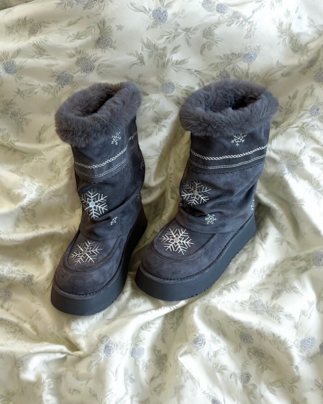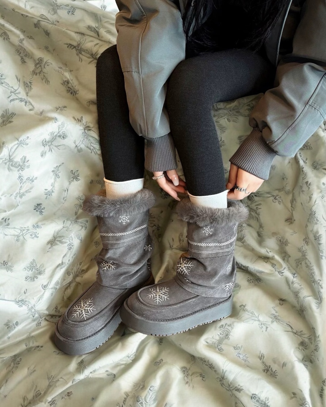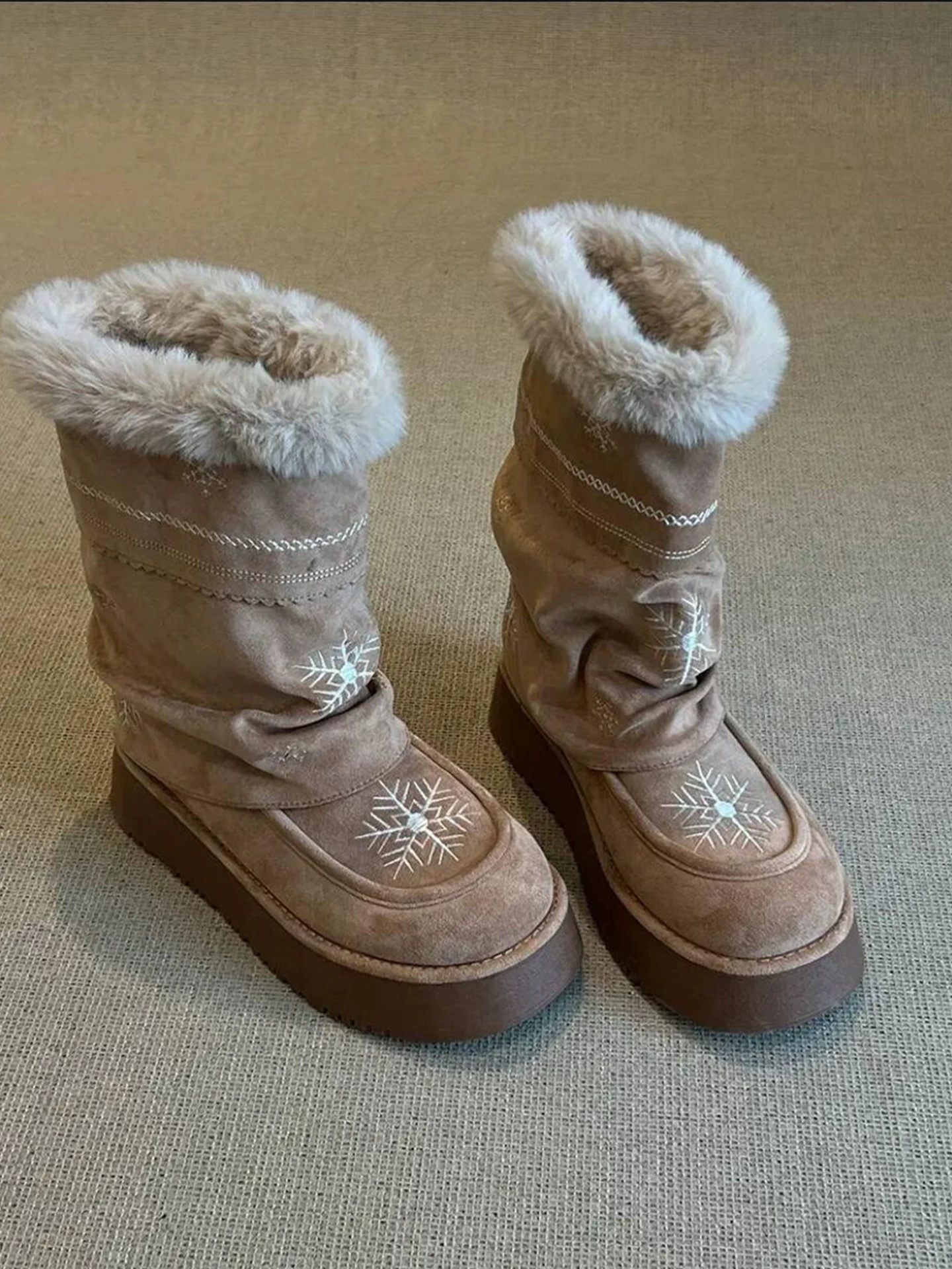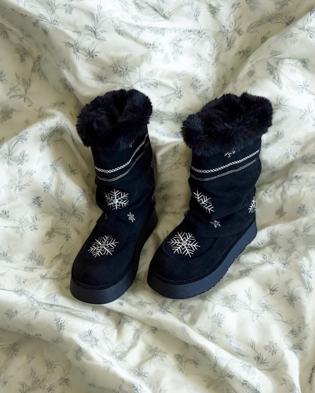 بوت برفدونه دخترونه با خز پفکی و گلدوزی برفی ❄️