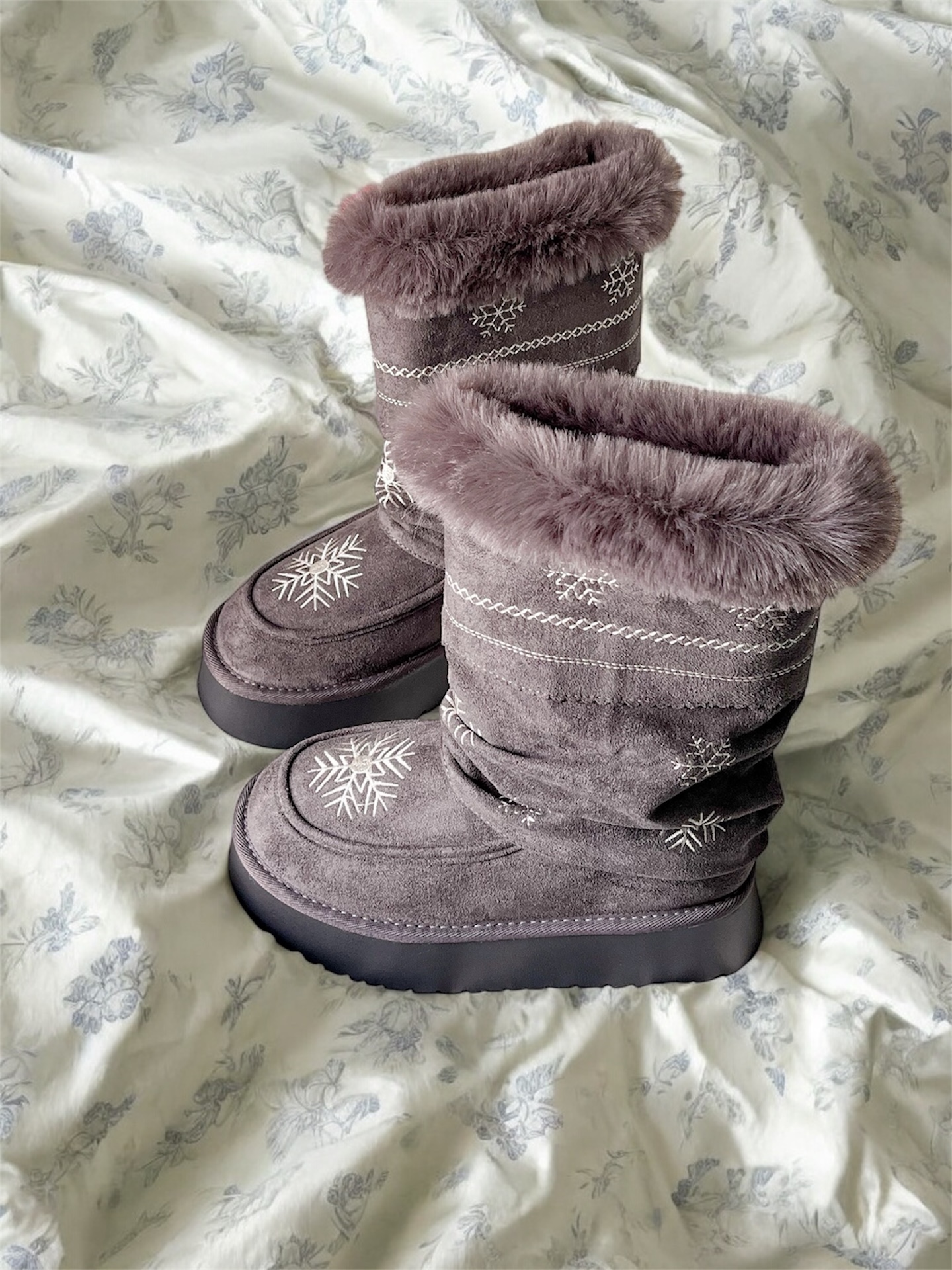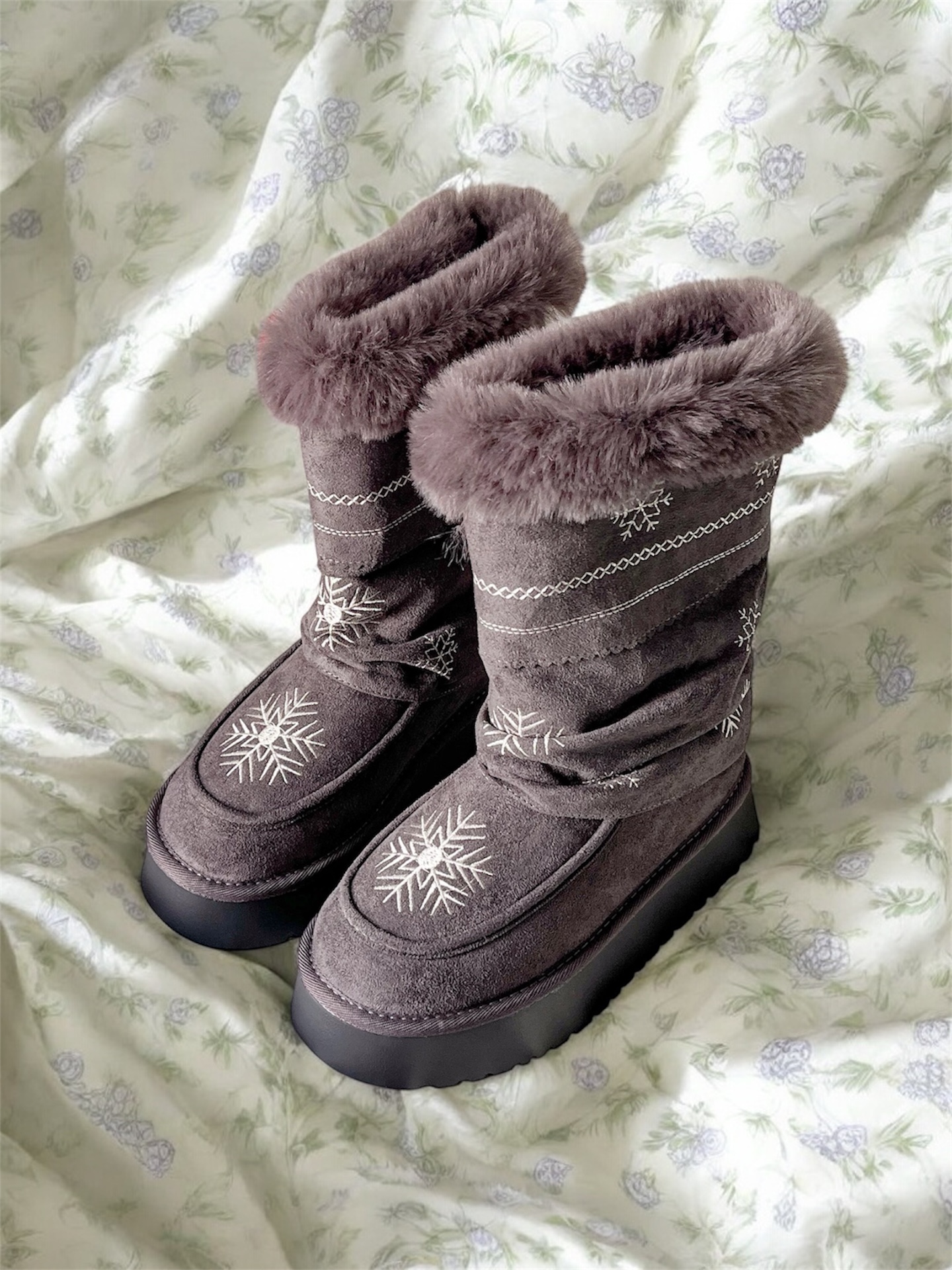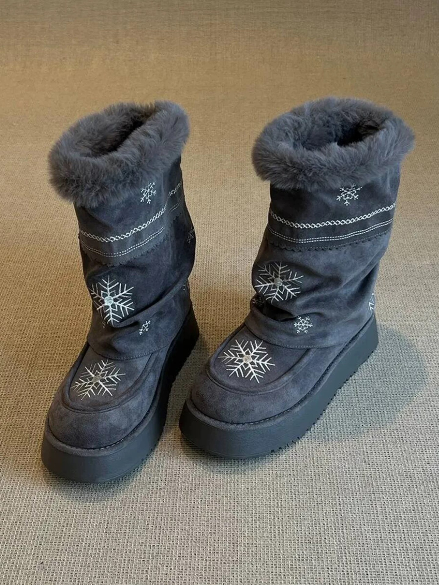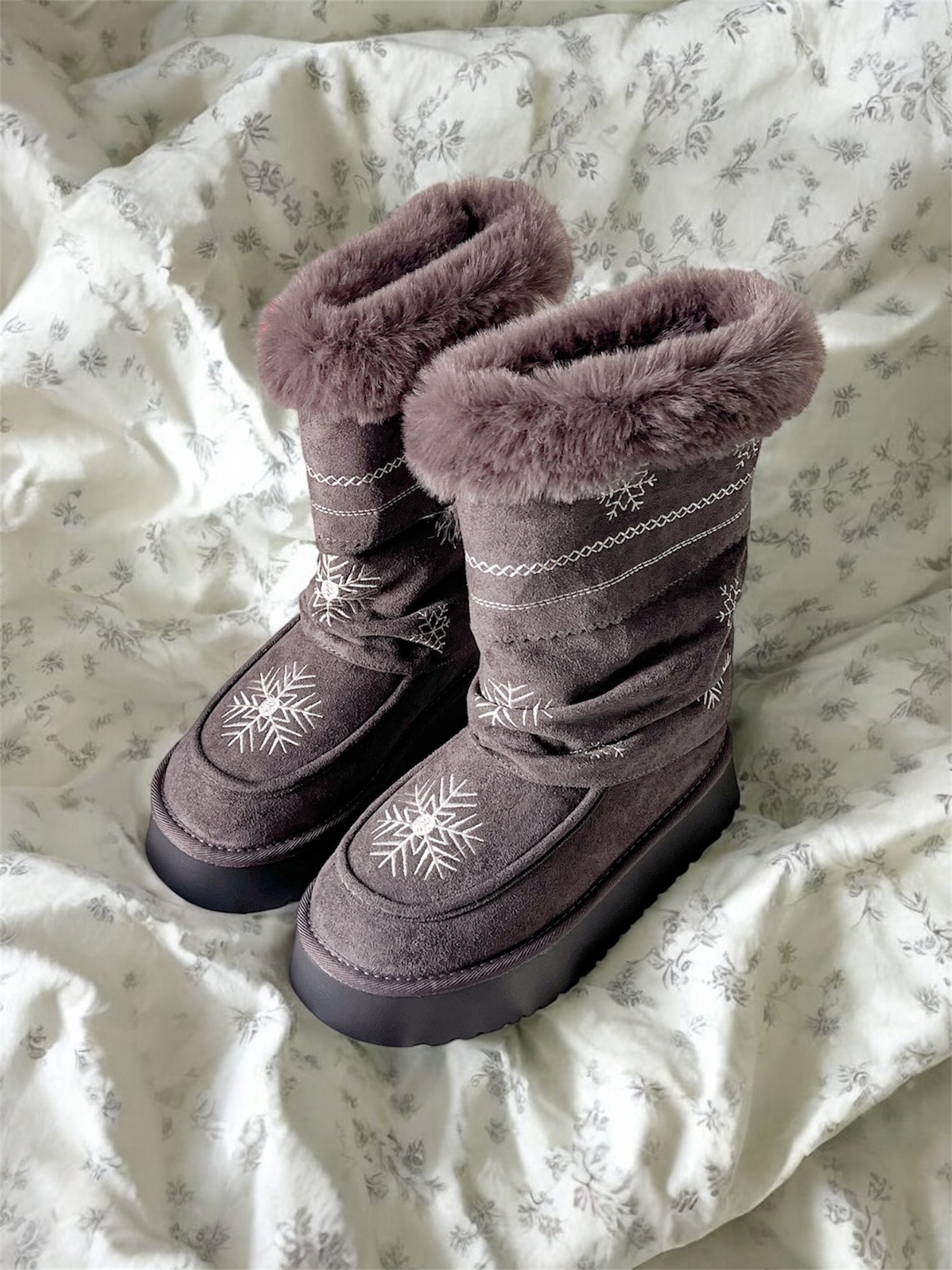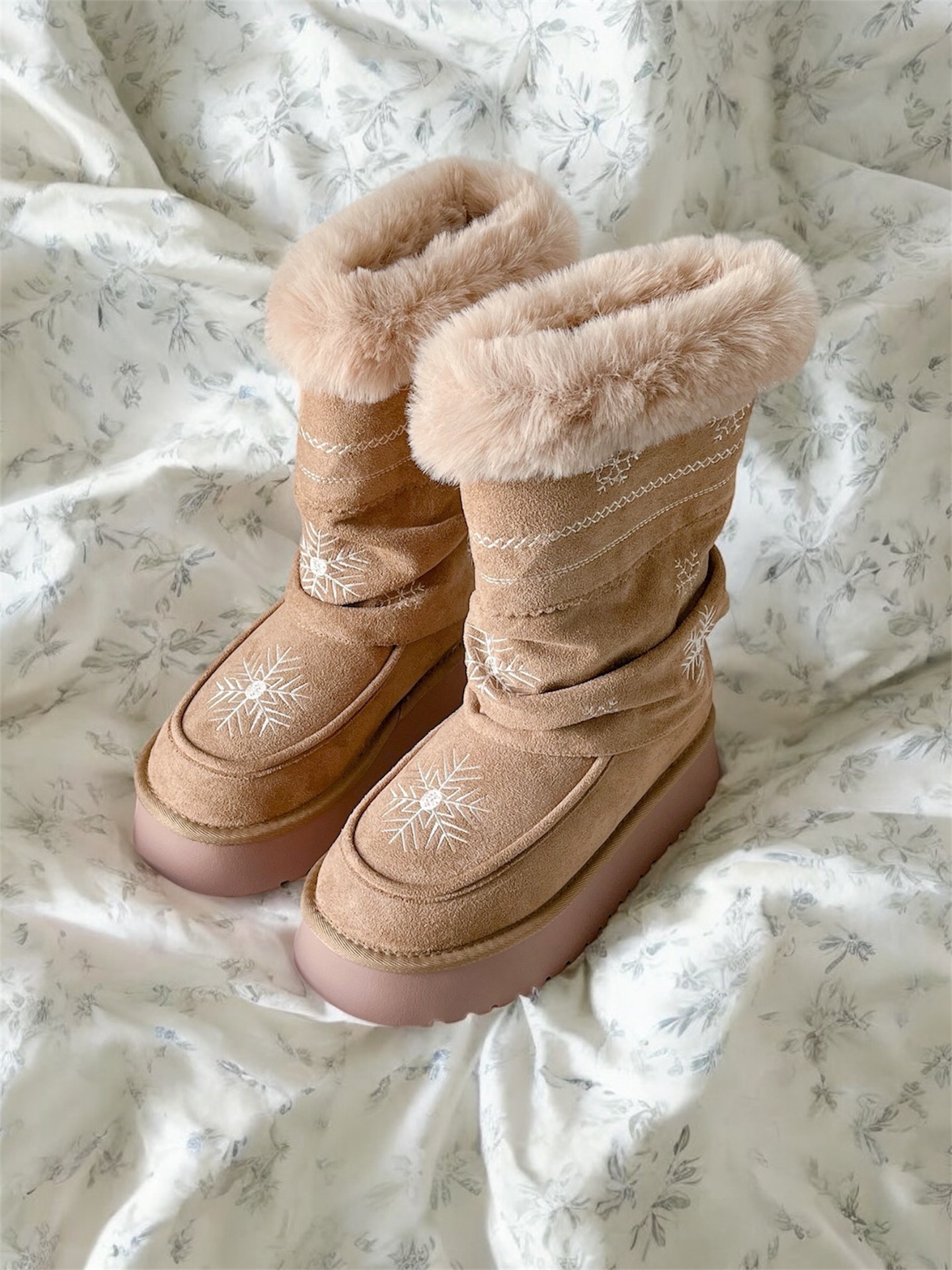 بوت برفدونه دخترونه با خز پفکی و گلدوزی برفی ❄️