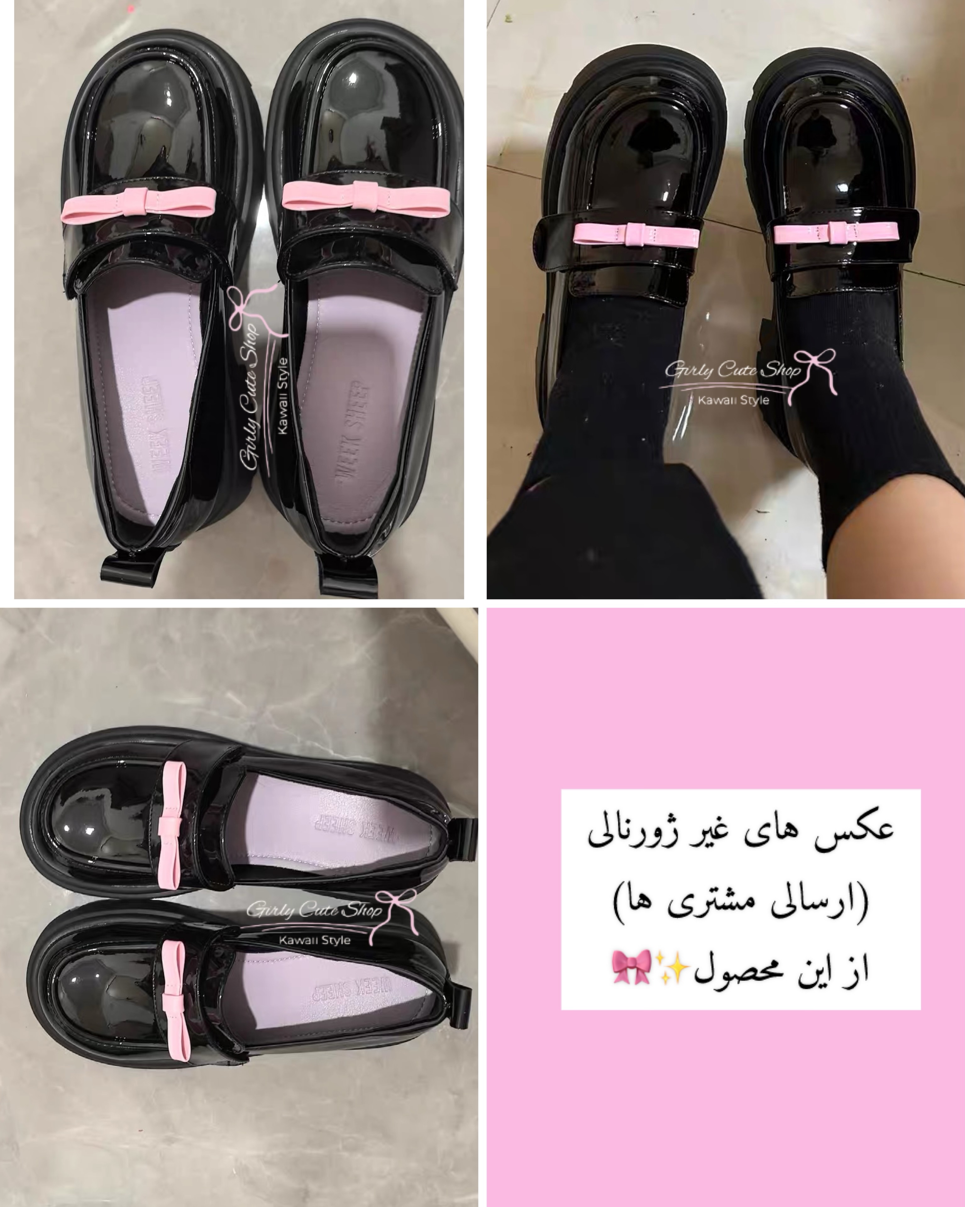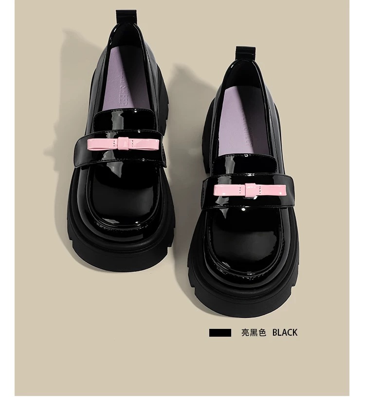 این لوفر زنانه براق پلتفرم،با لژ 6 سانتی متری انتخابی عالی برای دخترهایی است که به استایل خاص و ترندی اهمیت میدهند. طراحی براق مشکی در کنار پاپیون صورتی، ظاهری متفاوت و چشمگیر ایجاد کرده است.کفی پلتفرم ضخیم باعث راحتی پا و افزایش قد میشود و این کفش را برای استفاده روزمره و استایل خیابانی بسیار مناسب میکند. اگر به دنبال یک کفش دخترانه خاص با حالوهوای استایل کرهای هستید، این مدل انتخابی عالی برای شماست.